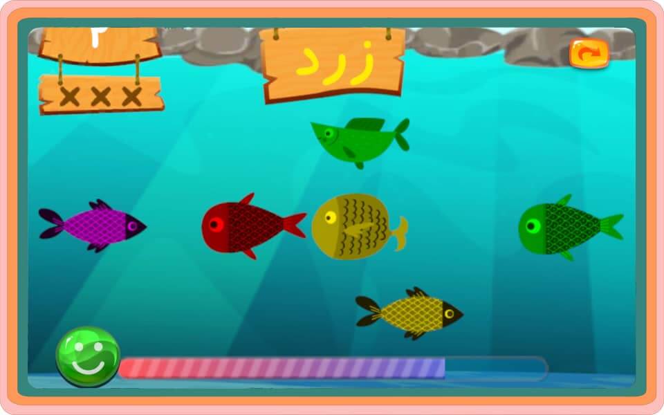 در عمارت شابیلو استخری هست که در حیاط باغ قرار دارد. این استخر ماهیهایی به رنگهای مختلف دارد. با کلیک روی این استخر بازی ماهیگیری فعال میشود. هدف این بازی شناخت رنگهای پرکاربرد و تشخیص اسم آنها به روش کلخوانی است. در ابتدا واژهها با رنگ مشخص هستند و پس از چند مرحله، رنگ حذف میشود و بازیکن بدون کمک گرفتن از رنگ و تنها با تشخیص شکل واژه میتواند بازی را ادامه دهد. سیستم امتیازدهی بازی با نگهداشتن رکورد هر بازیکن و اعلام رکوردهای جدید، بازیکن را به دقت بیشتر و رسیدن به مراحل بعدی تشویق میکند. بعد از گذراندن مراحل ابتدایی و با مسلط شدن به این واژهها، ماهیهای دیگری (مثل ارهماهی، فرشتهماهی، اسب دریایی و …) که بازیکن در کتابهای شابیلو با آنها آشنا شده، جایگزین میشوند و دایرهی واژگانی بازی گسترش مییابد.